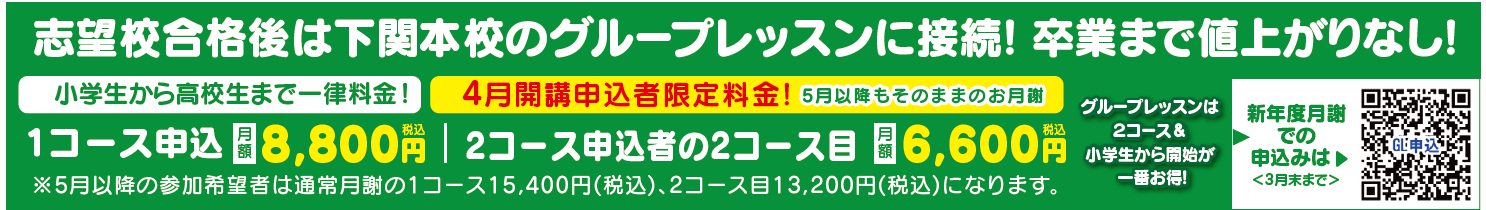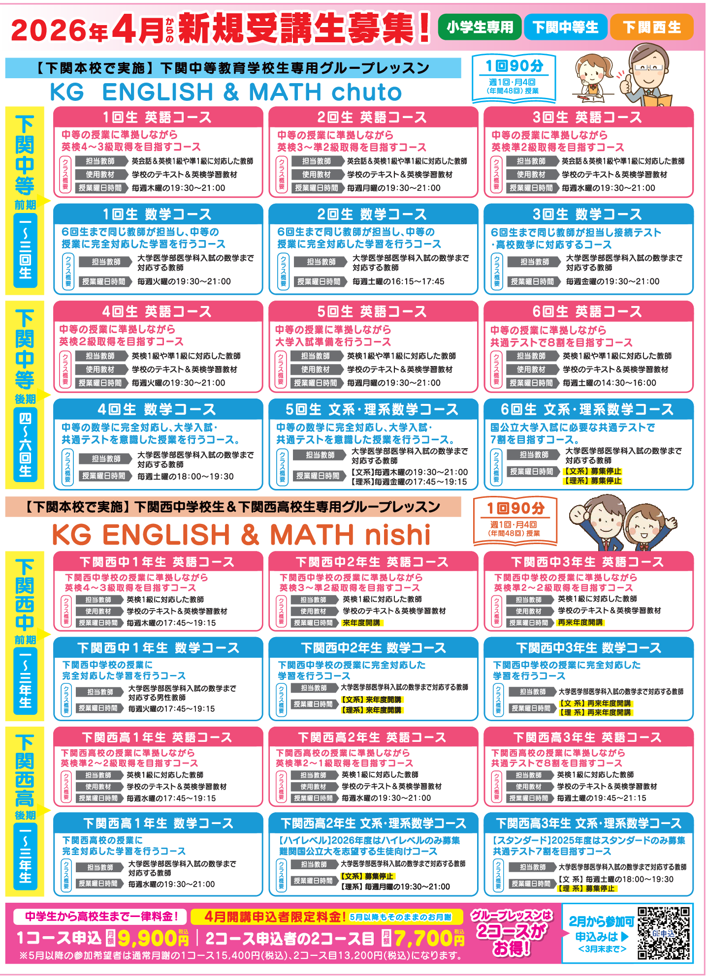 ※KATEKYO学院下関本校のグループレッスン「下関西中生専用コース」「下関西高生専用コース」「下関中等生専用コース」はこちら