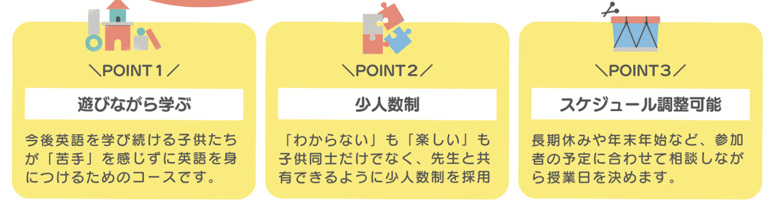 2026年4月より開講となるグループレッスン第4期の募集を開始しました。さらに並行して現在実施中のコースのみ先行募集も行っています。※先行募集中のコースは英検5級対策コースのみ。このコースは2月から参加可能です。4月からの時間割はこちら。